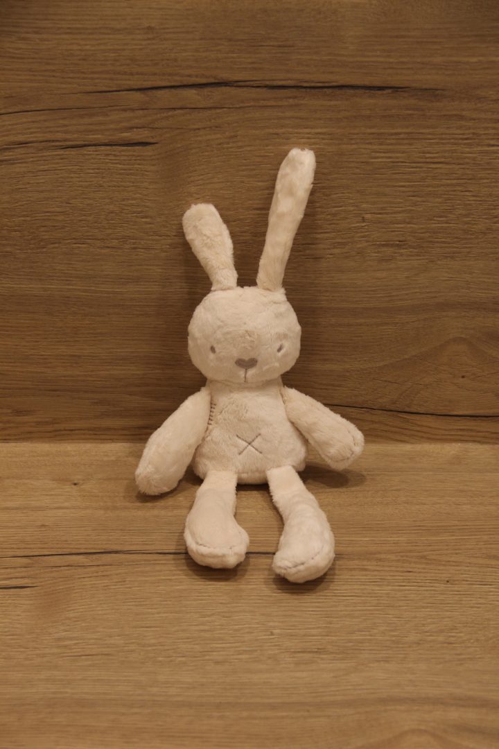 50cm triušiukas puikiai tiks vaiko gimimo, gimtadienio ar krikštynų proga.