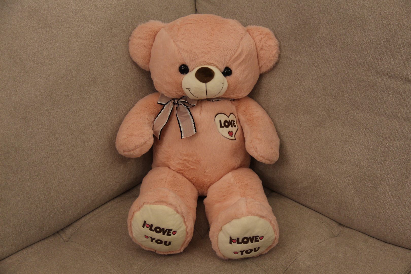 75cm rausvas meškiukas su kaspinu ir užrašu I Love You.