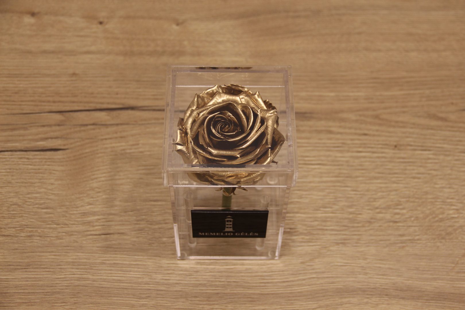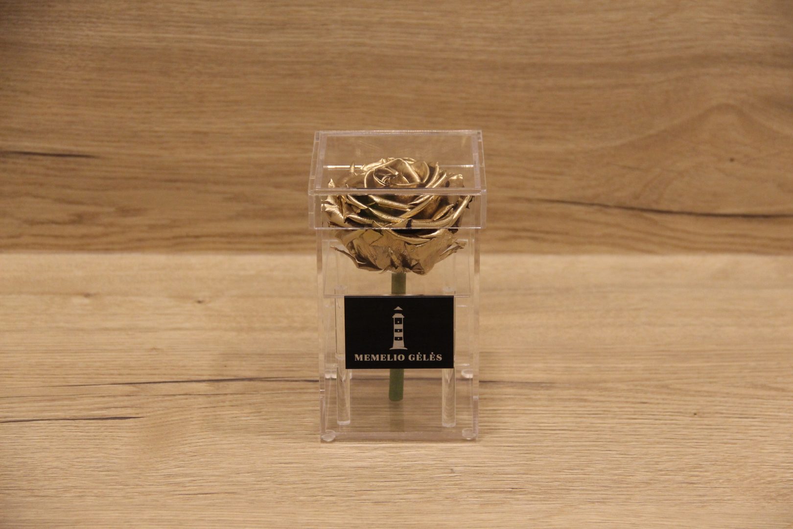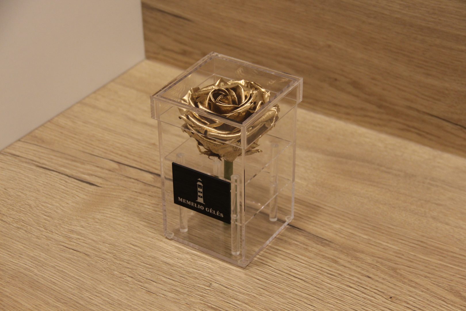 Išskirtinės prabangos Auksinė mieganti rožė akrilinėje dėžutėje.