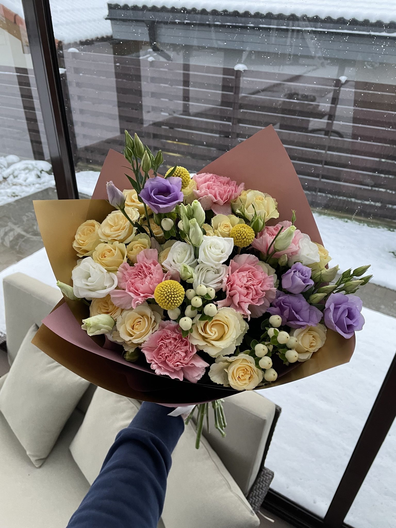 Šią puokštę turime vietoje ir galime pristatyti lapkričio 30 – gruodžio 1 dienomis.