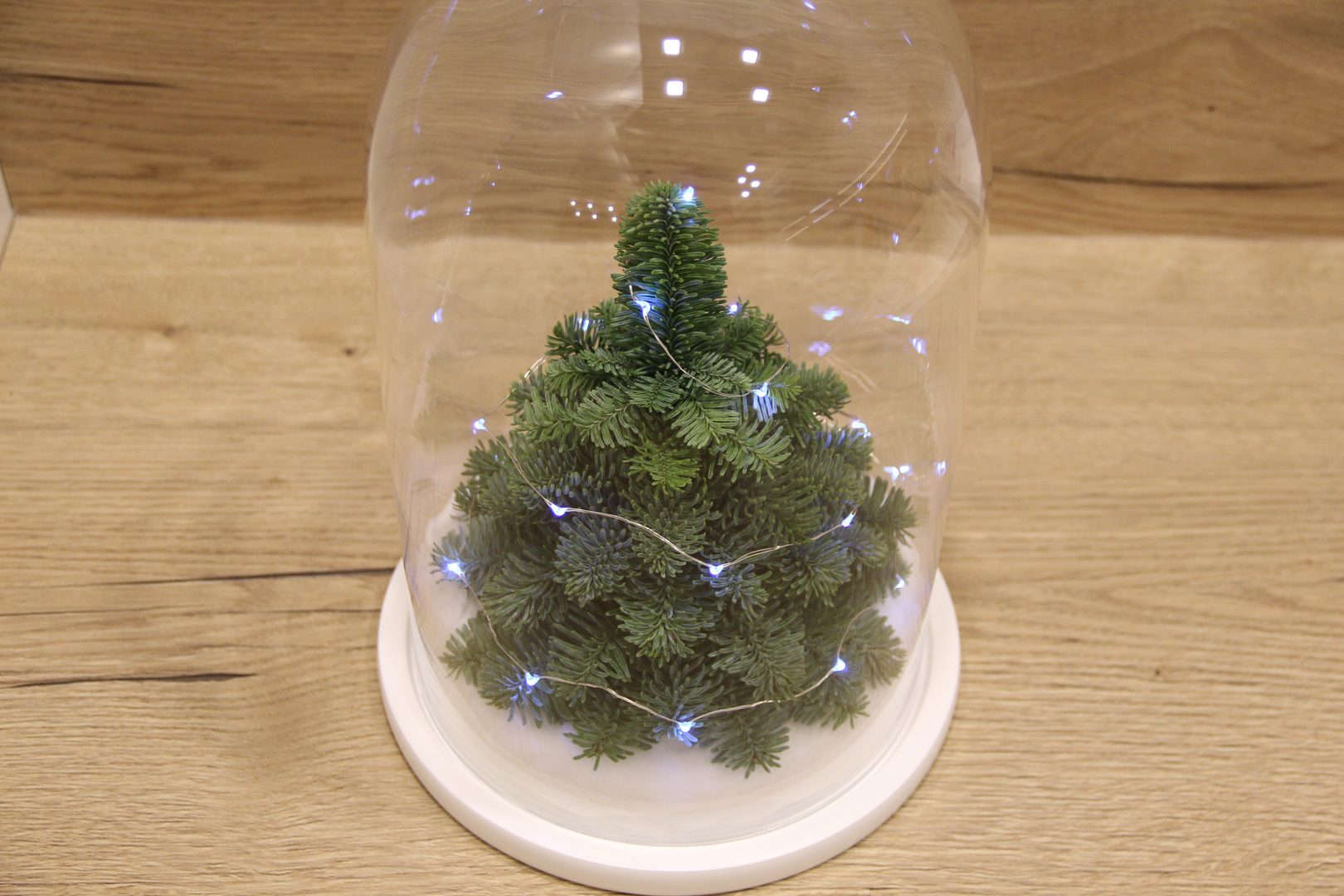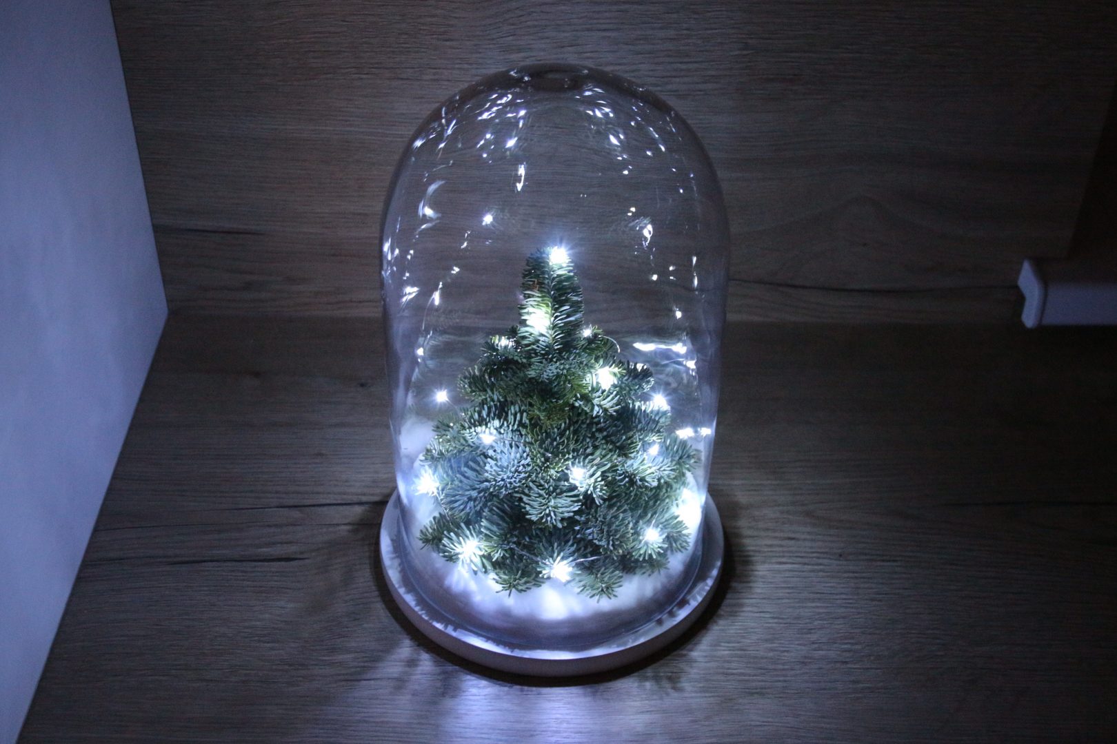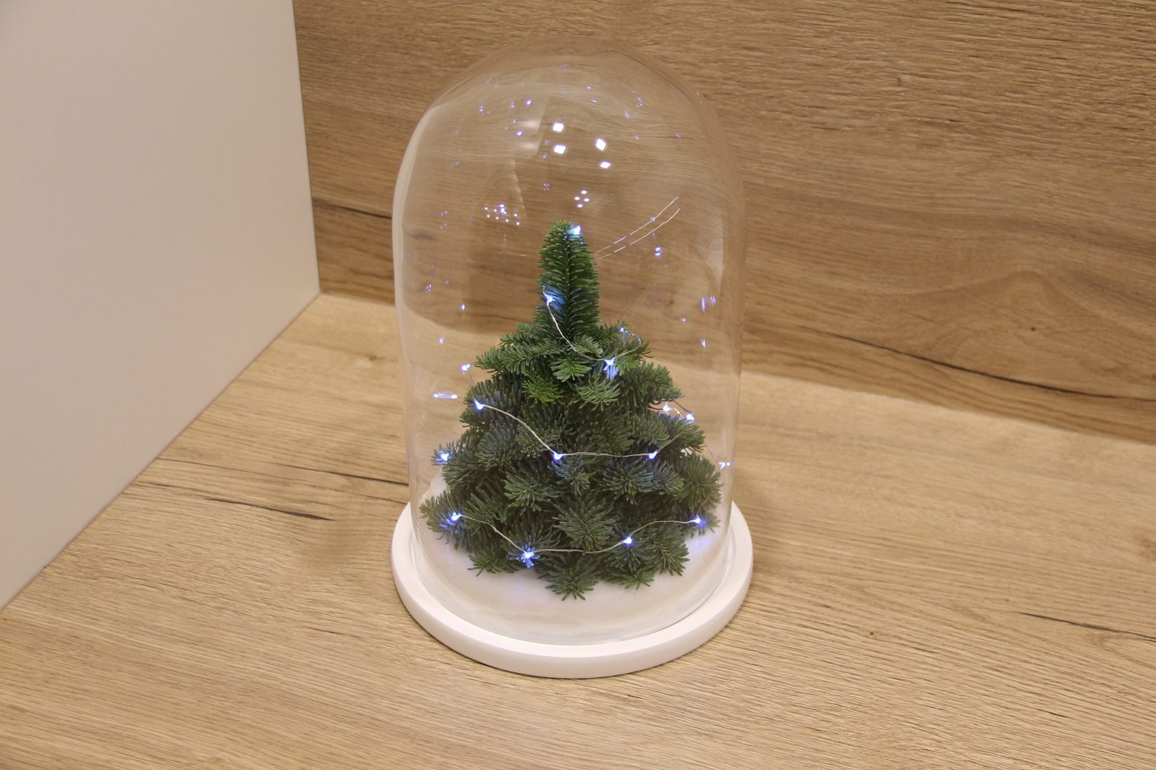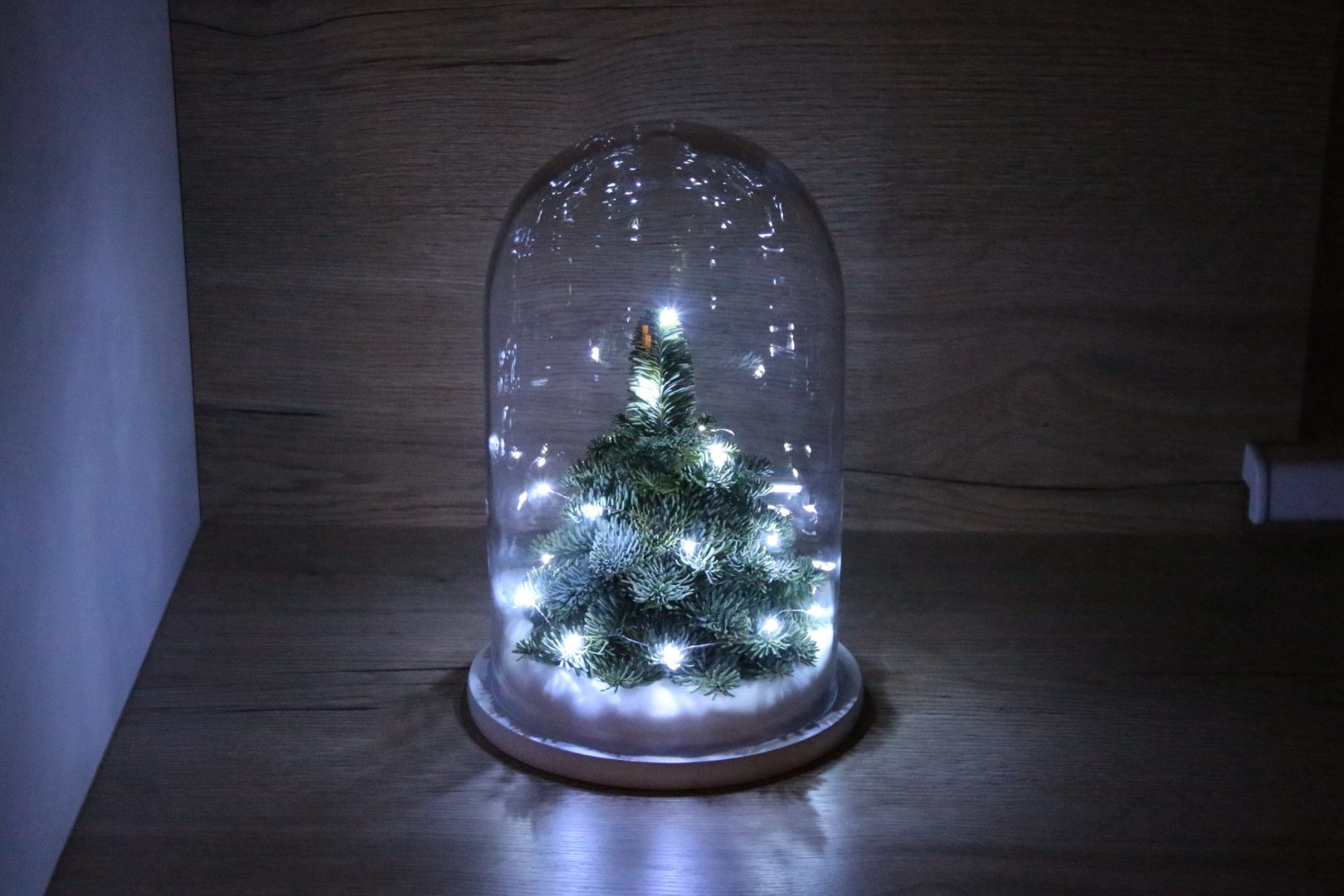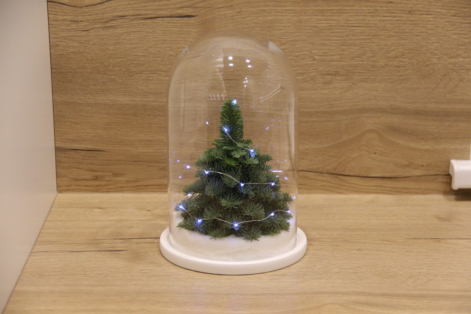 Rankų darbo kėnio šakelių eglutė po kupolu su led lemputėmis. Puiki dovana ir interjero detalė prieškalėdiniu ir Kalėdiniu laikotarpiu.