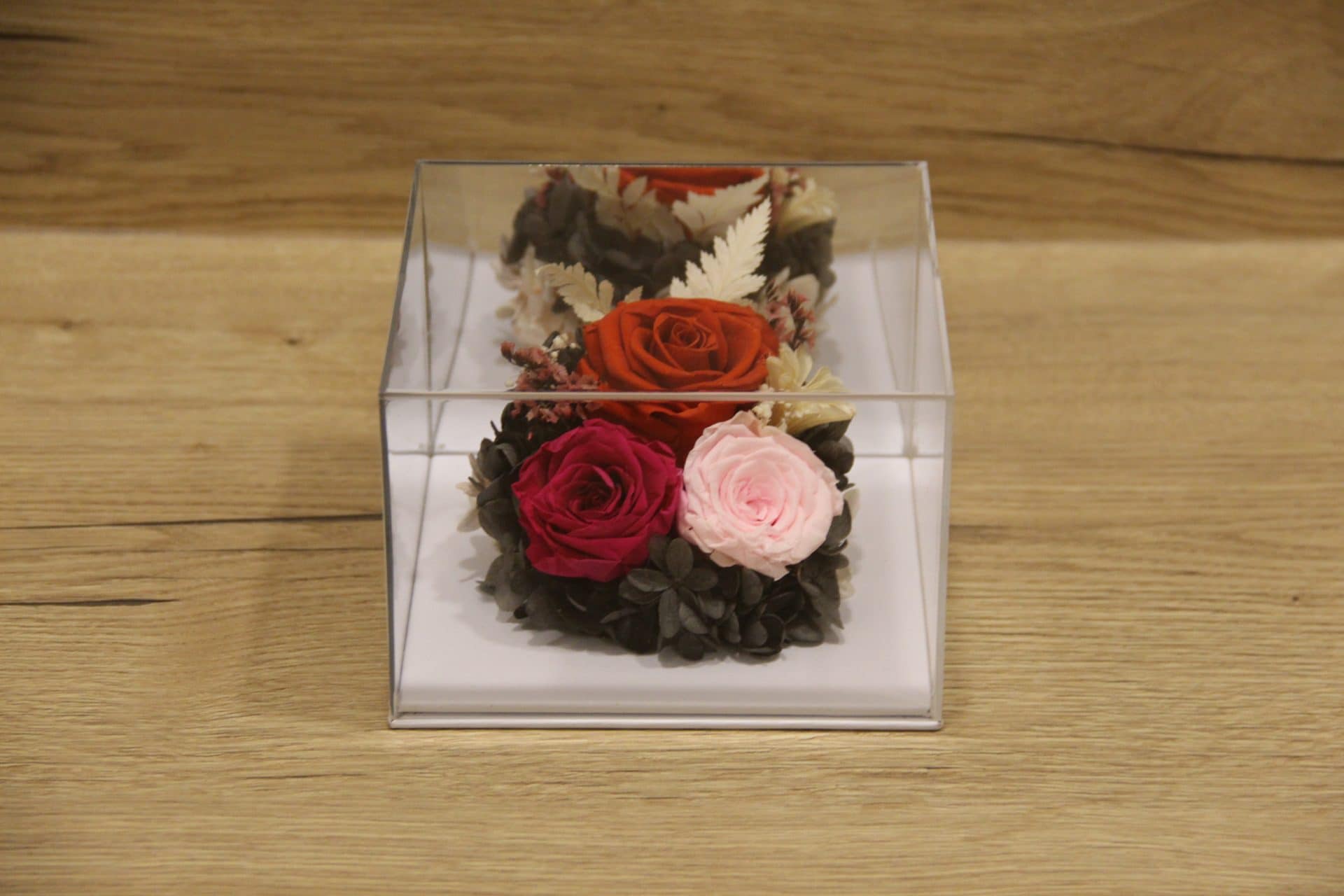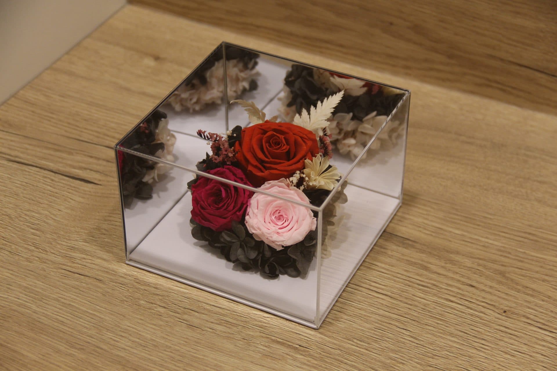 Akrilinės dėžutės išmatavimai: 15x15x10cm.