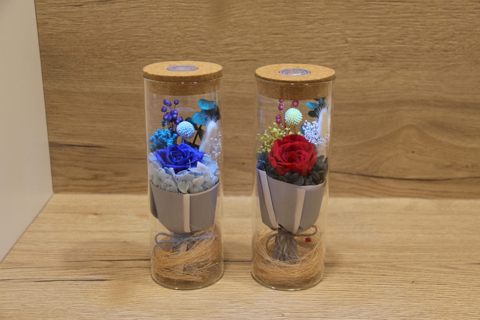 Galimi keturi puokštės variantai: su raudona, tamsiai mėlyna, rausva arba spalvota miegančia rože.