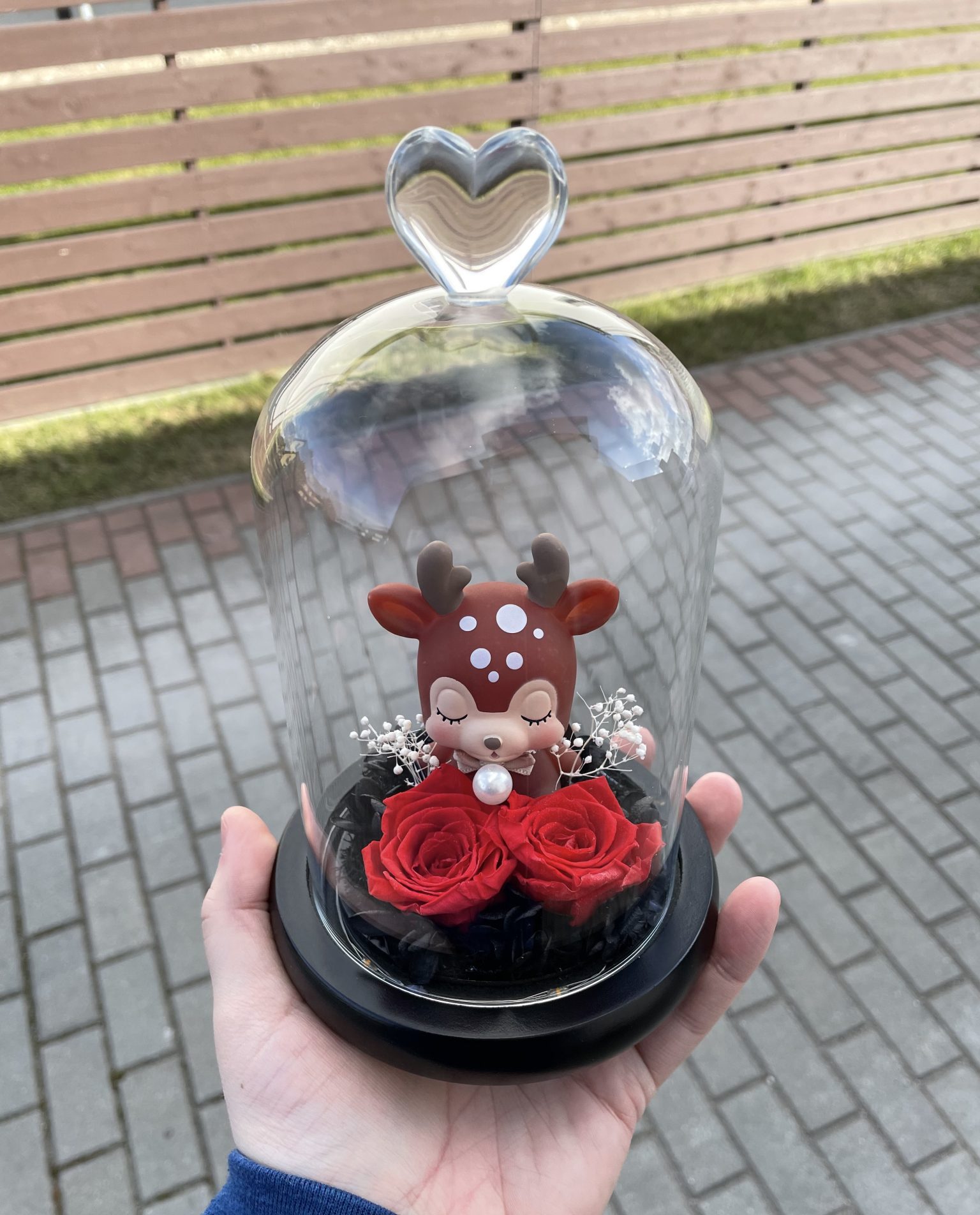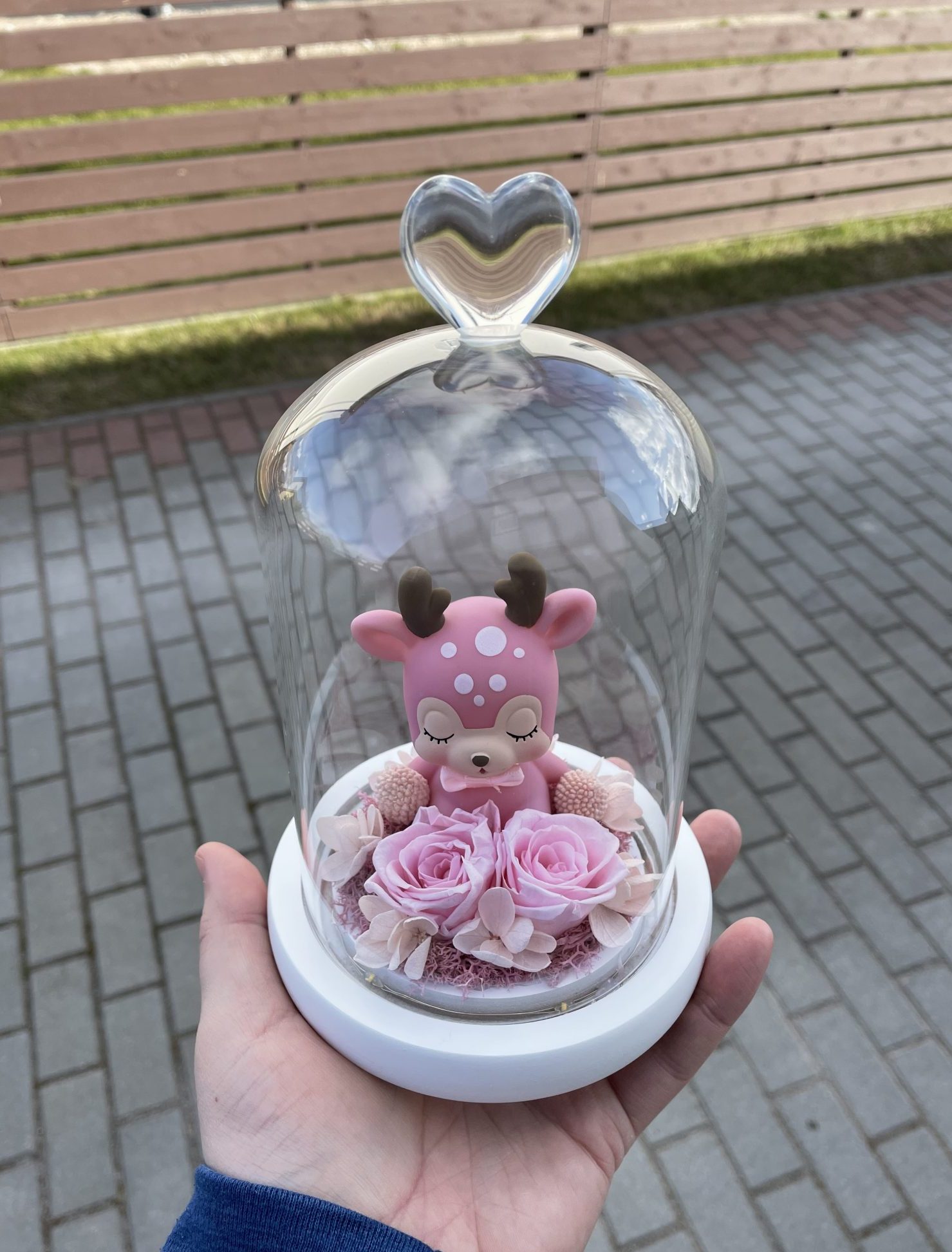 Stirniukas su miegančia rože po kupolu ir led lemputėmis.