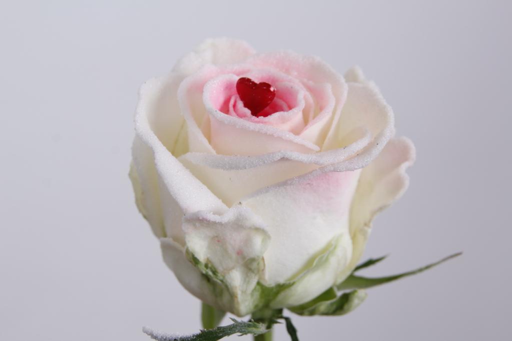 Sugar love – baltos rožės su širdele – Valentino dienai specialiai sukurta rožė.