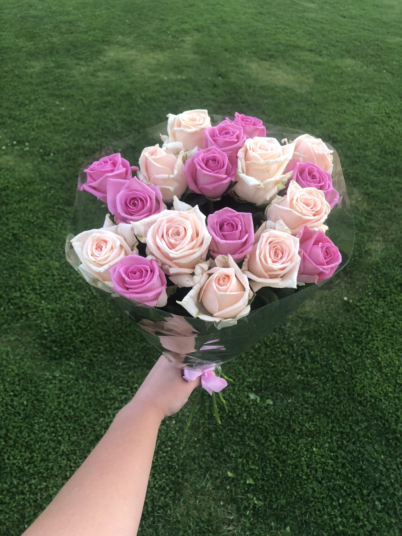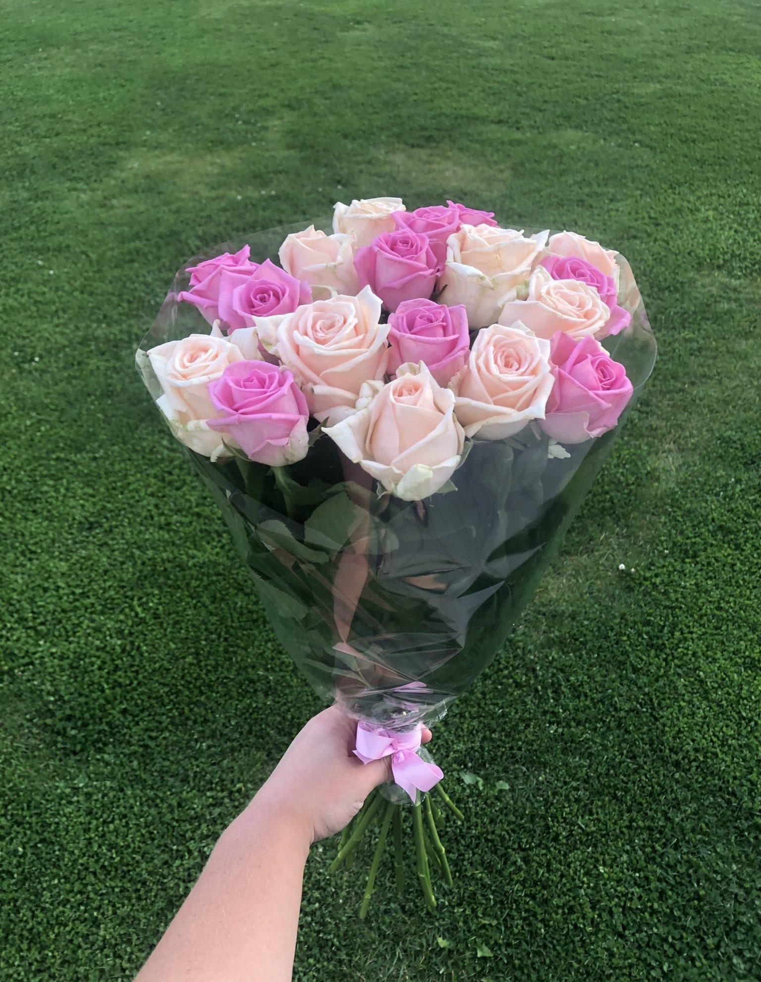 Nuotraukoje pavaizduota 19 rožių puokštė, kotelio ilgis – 60-70cm.