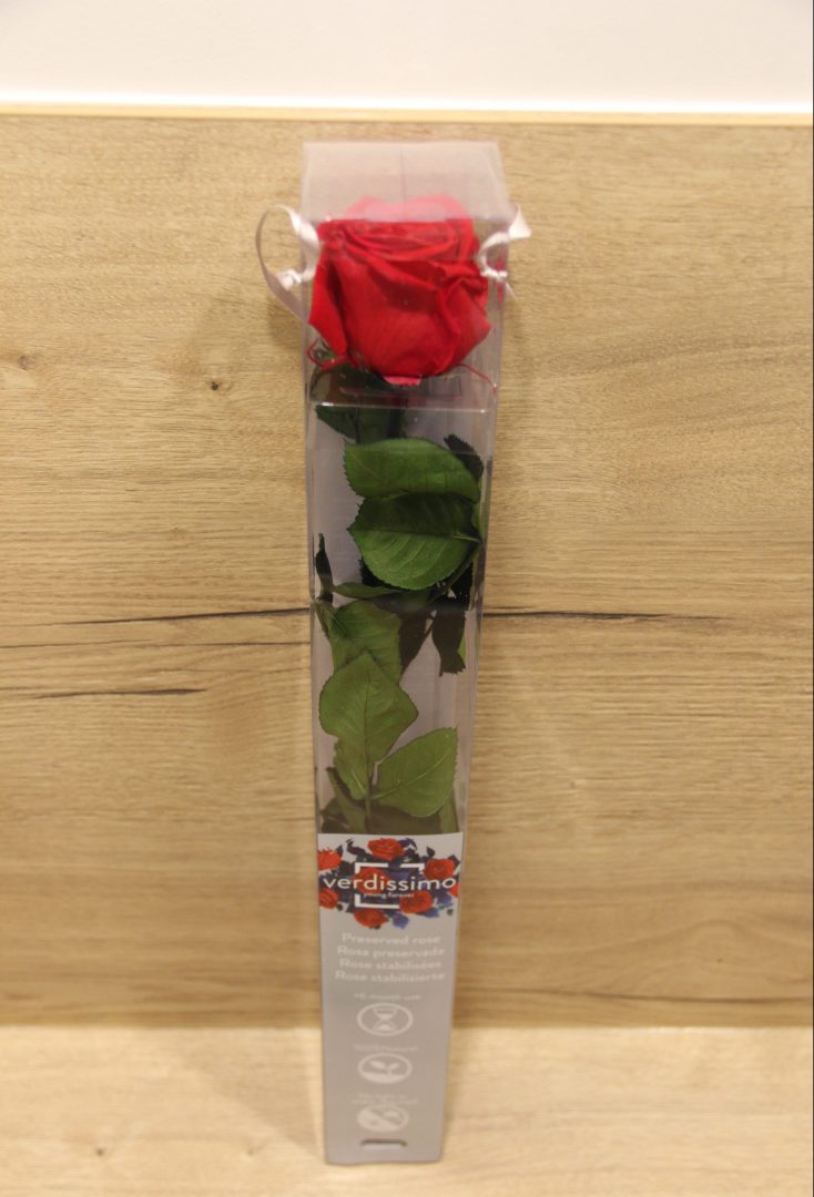 Vidutinė raudona mieganti rožė dovanų dėžutėje, kuri Jus džiugins nuo 6 mėnesių iki kelerių metų.