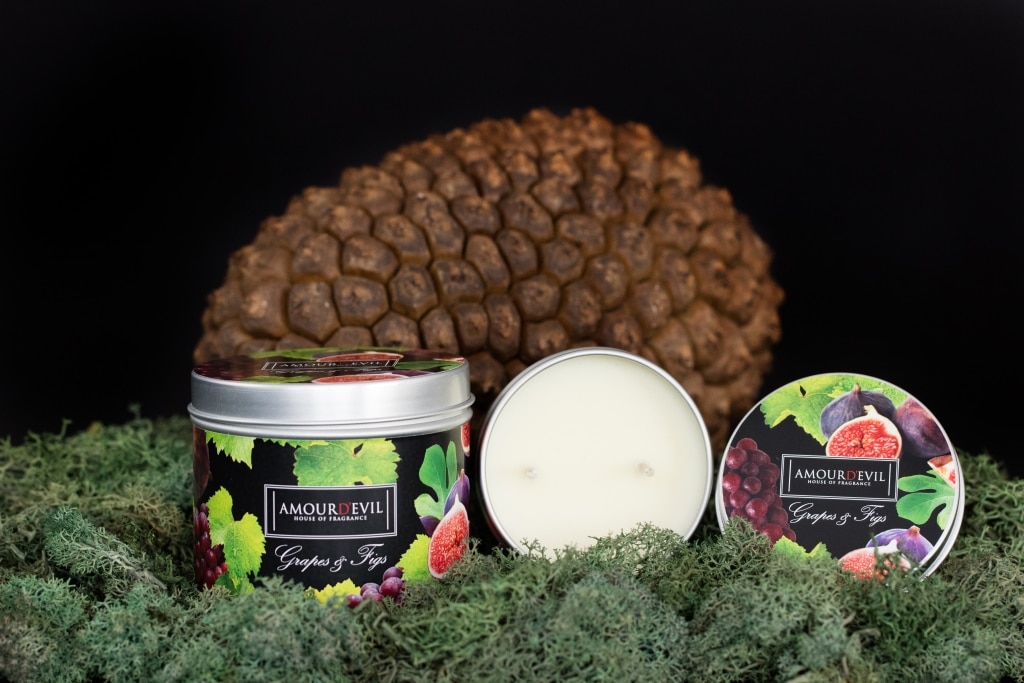 AmourD’evil žvakė skardinė “Vynuogė ir figa”.